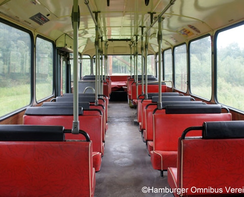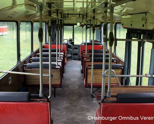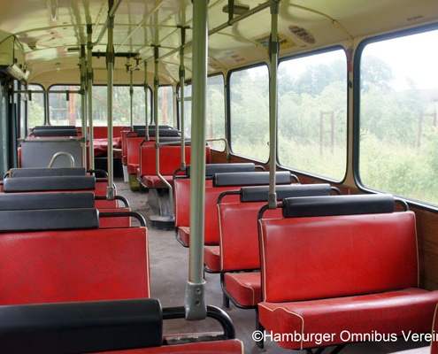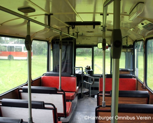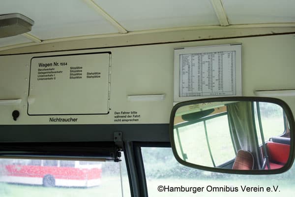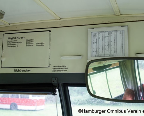 Der Wagen 1554 war während seiner Einsatzzeit ausschließlich auf dem Betriebshof Mesterkamp stationiert. Nach 9 Jahren im HHA-Dienst wurde er 1983 an den Omnibusbetrieb Rech in Bardowick verkauft, der zahlreiche ehemalige Hamburger Busse für den Schülerverkehr einsetzte. Dort wurde die originale Polsterung gegen mit bleuem Stoff überzogene grüne Sitze aus der 8. Serie getauscht. Hätten wir das schon 1986 geahnt, hätten wir bei der Übernahme des Wagens 1071 von 1970 die für diesen Bus verkehrte, rote Bestuhlung behalten – so wurde sie damals bei alga gegen die korrekte, beige Bestuhlung ausgetauscht.