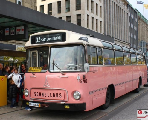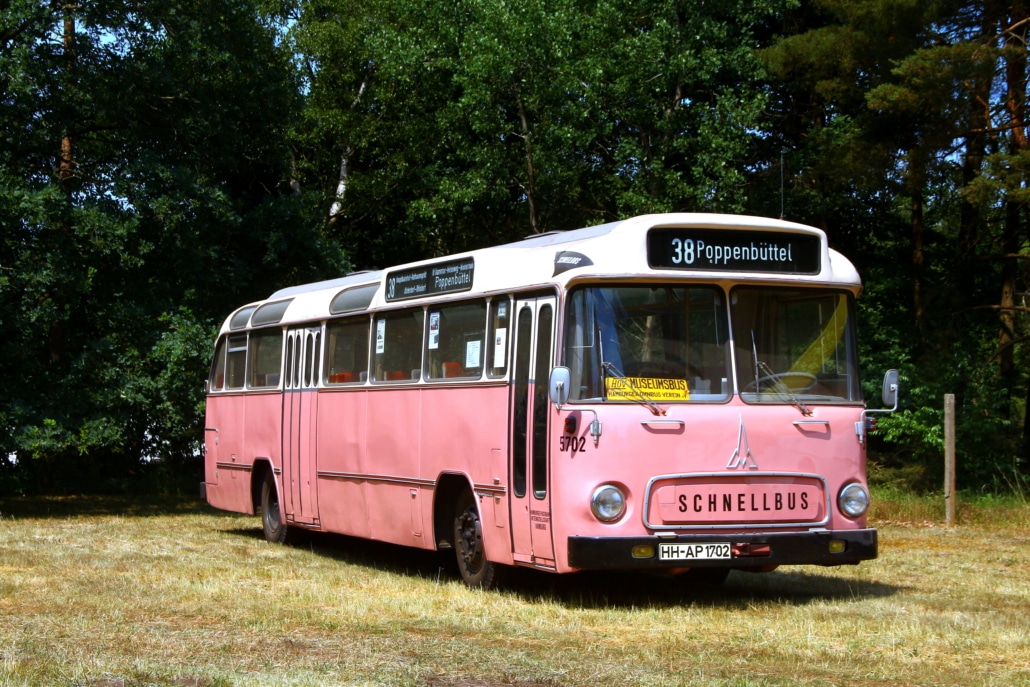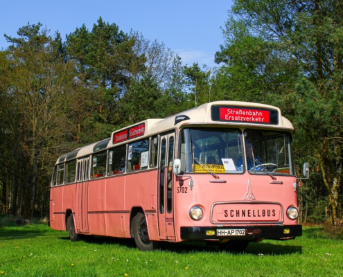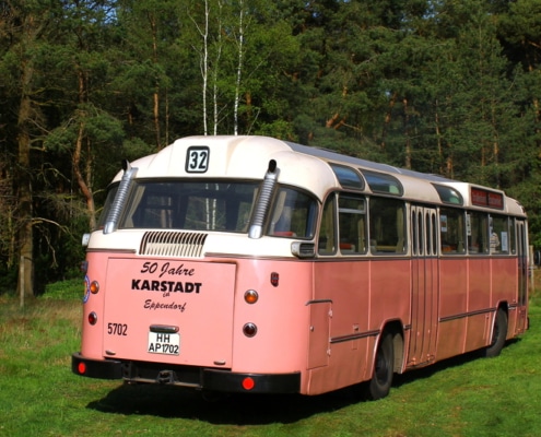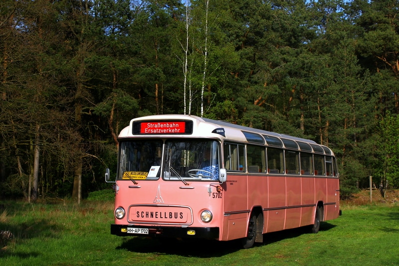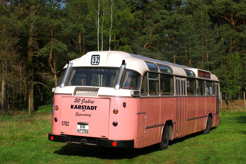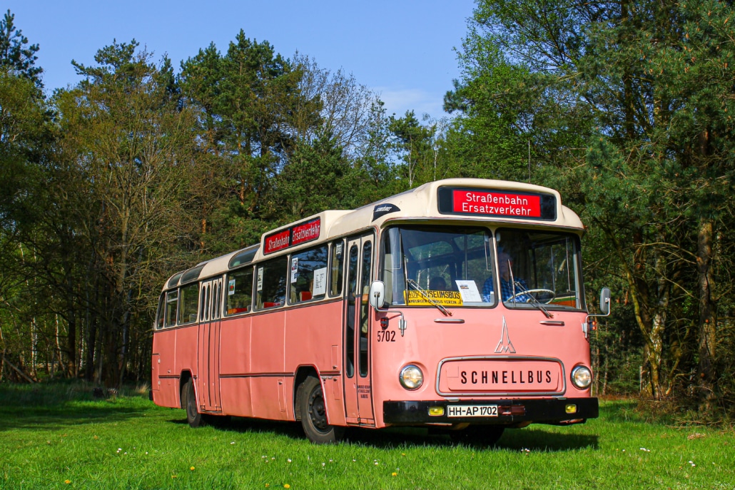 Wagen 5702 entstammt der 7. und letzten Saturn II-Schnellbusserie – dem Höhepunkt der Schnellbus-Entwicklung bei der HHA in den 1960er Jahren. Die komfortablen Federkernsitze mit hochgezogenen Rückenlehnen und Plüschbezug (abwechselnd rot und blau), kombiniert mit einer weichen Luftfederung, boten einen Fahrkomfort, der heute kaum noch erreicht wird. Das Warmluft-Heizungssystem mit Fußbodenkanälen sorgte für eine besonders effiziente und gleichmäßige Wärmeverteilung im Winter – ein klarer Vorteil gegenüber den sogenannten Medium-Heizungen der Konkurrenz (Büssing, MAN, Daimler-Benz). Wagen 5701–5703 waren reisefähig ausgestattet, mit Gardinen, Gepäcknetzen, Reserveradfach unter dem Fahrersitz und Werkzeugfach hinten links. Alle 57er verfügten außerdem über eine automatische BROSE-Fahrtzielbandanlage, wie sie auch 1965-68 in alle Straßenbahn-Triebwagen der HHA eingebaut wurde – im Busbereich allerdings nur 1964/65 versuchsweise.